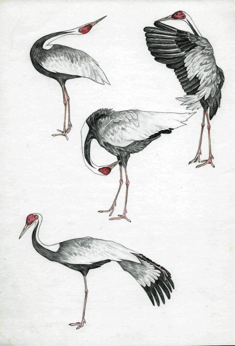 ![Журавль рисунок карандашом]()