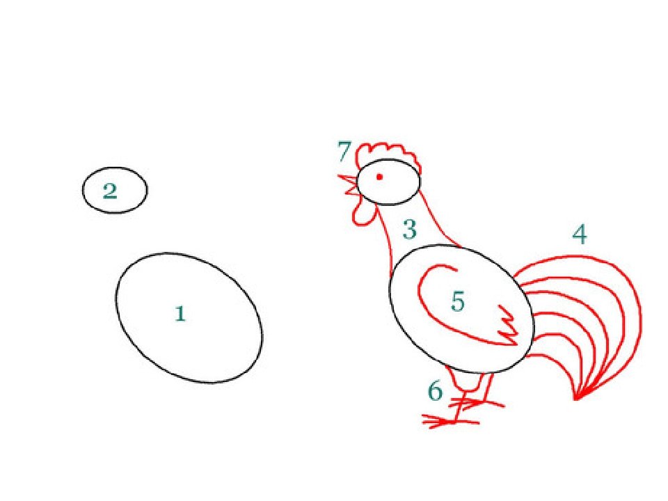 ![Схема рисования петуха для детей]()