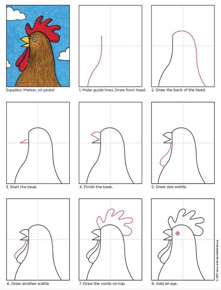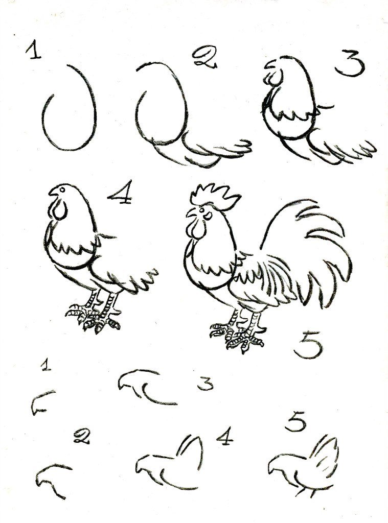 Как нарисовать петуха поэтапно