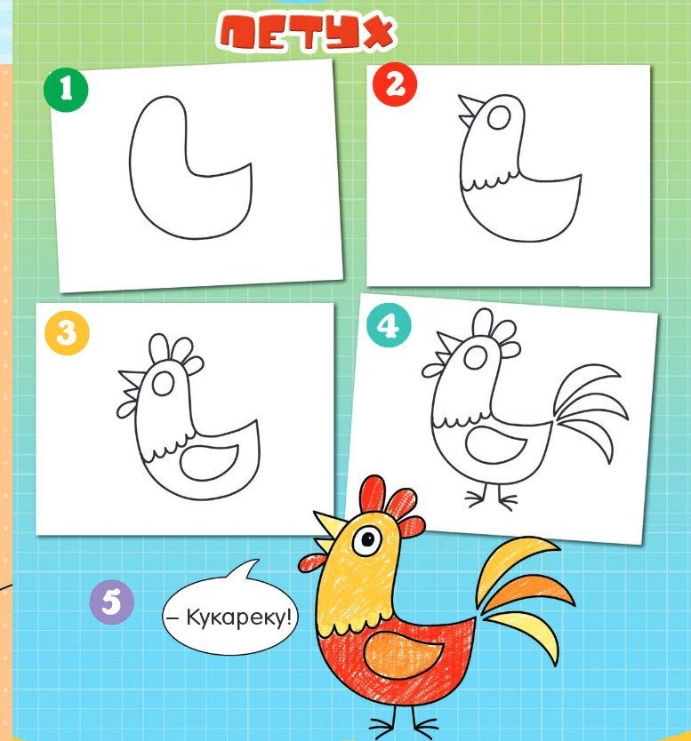Схема рисования петуха для детей