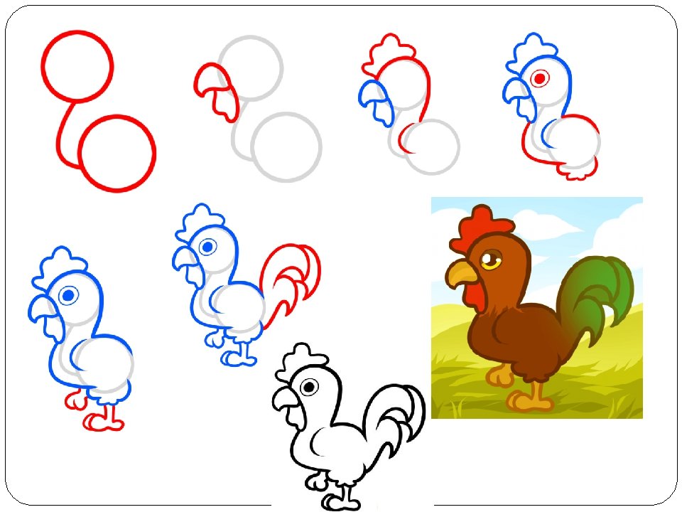 ![Как нарисовать петуха]()