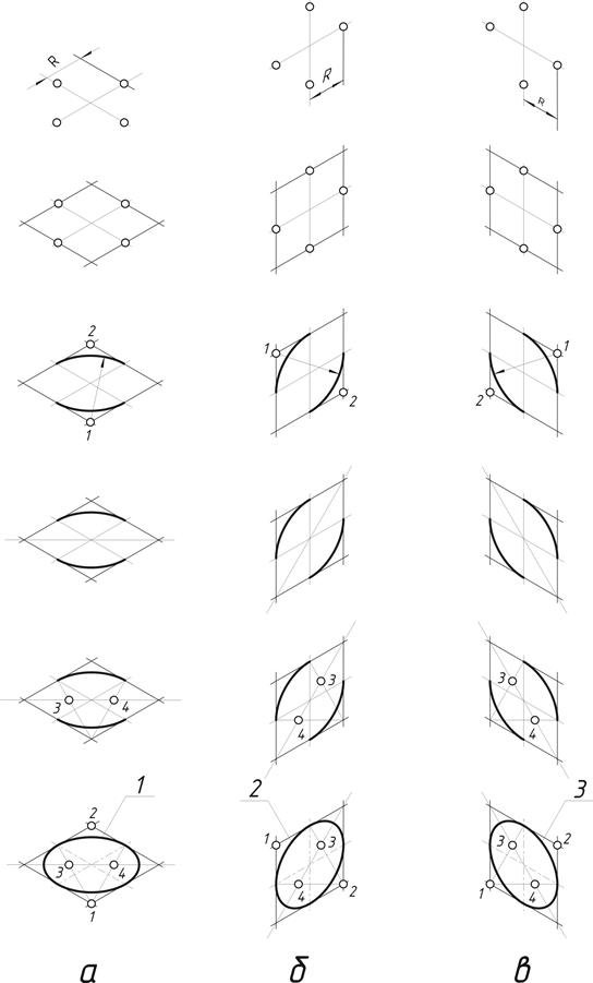![Как построить эллипс в перспективе]()