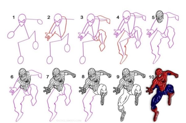 ![Человек паук пошаговый рисунок]()