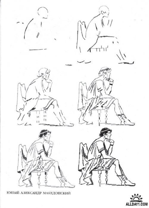 Рисунок сидящей фигуры этапы