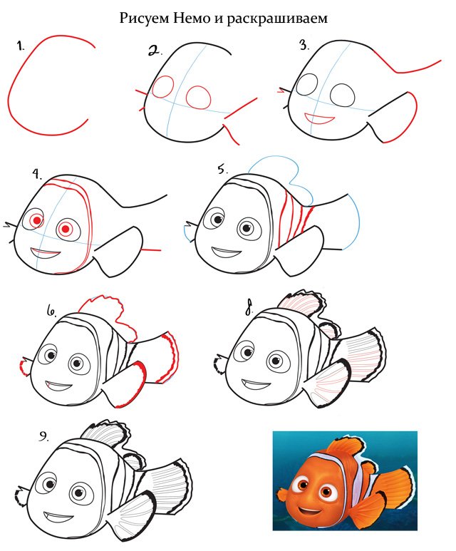 Поэтапные рисунки сказочных героев