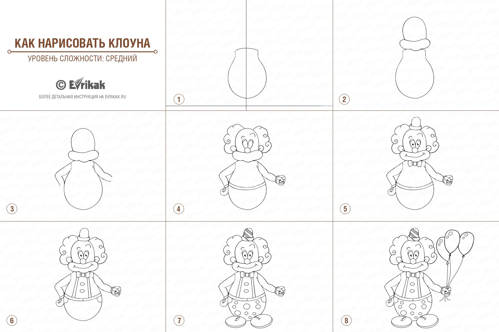 Поэтапное рисование клоуна