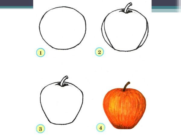 Поэтапное рисование яблока для дошкольников