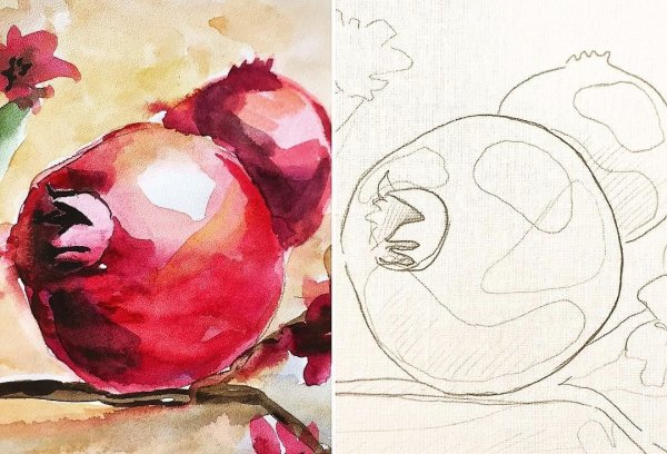 Ботаническая живопись акварелью гранат