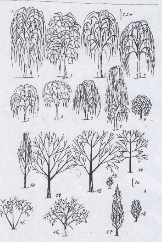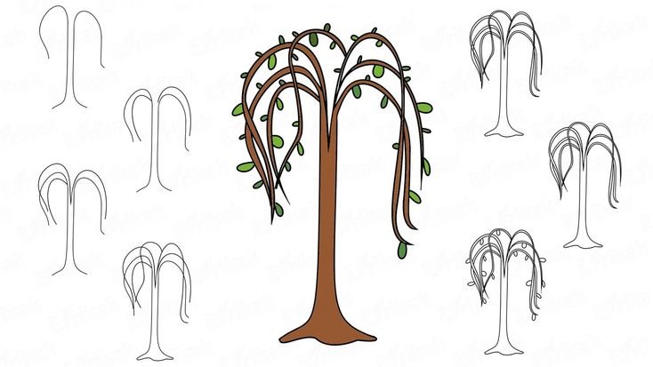 ![Скетчи деревьев Ива]()