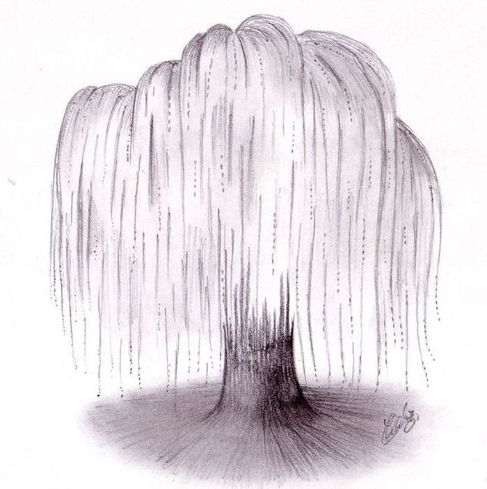 Плакучая Ива карандашом