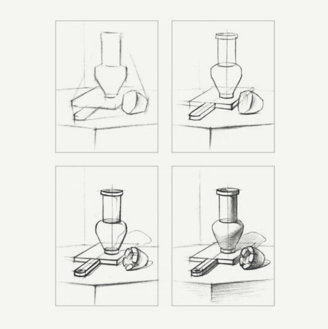 Поэтапный рисунок натюрморта карандашом