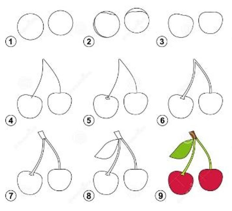 ![Как нарисовать вишню поэтапно]()