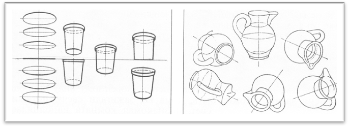 ![Рисование с натуры объемного предмета конической формы кофейник]()