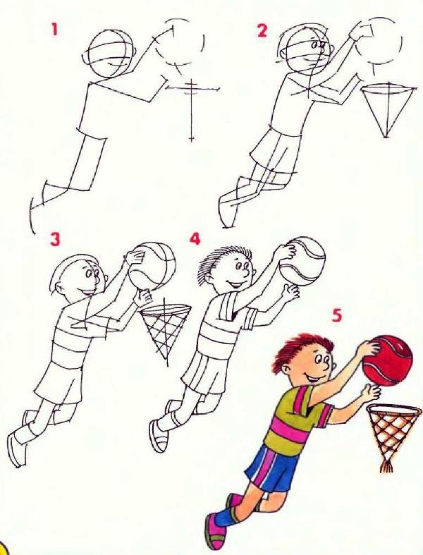 ![Пошаговое рисование человека в движении для детей 5-7]()