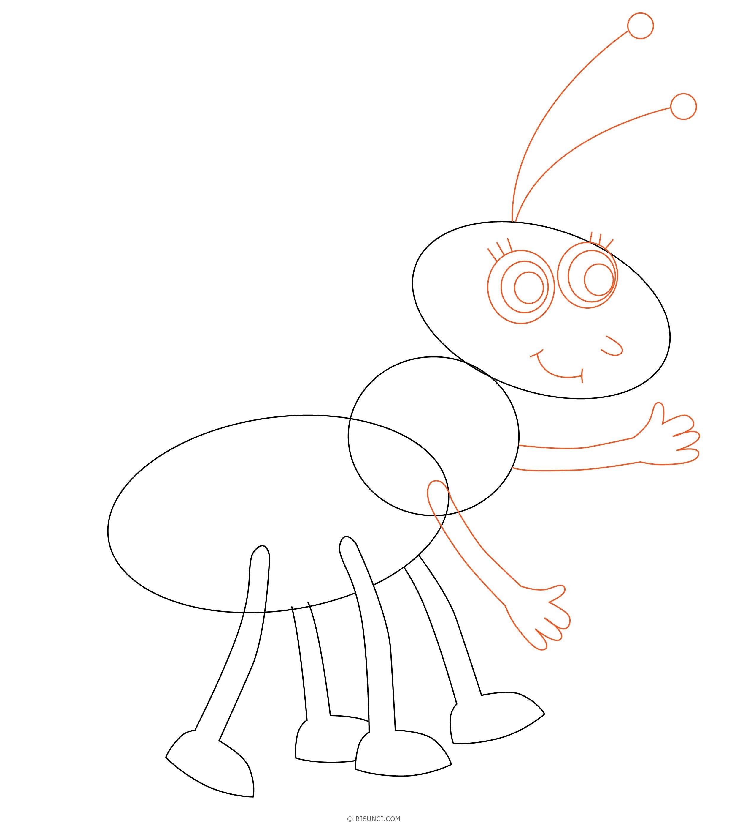 Муравей рисунок для детей карандашом пошагово