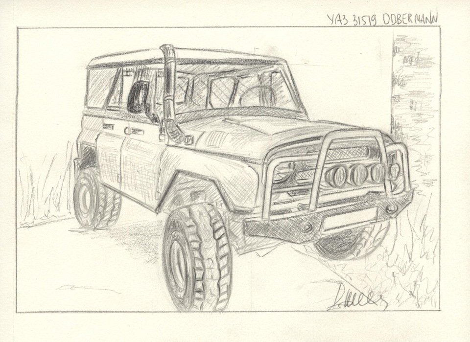 УАЗ рисунок карандашом