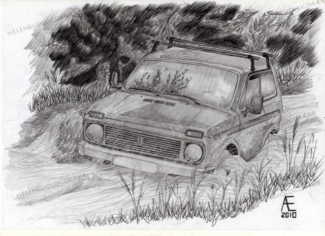 ![УАЗ рисунок карандашом]()