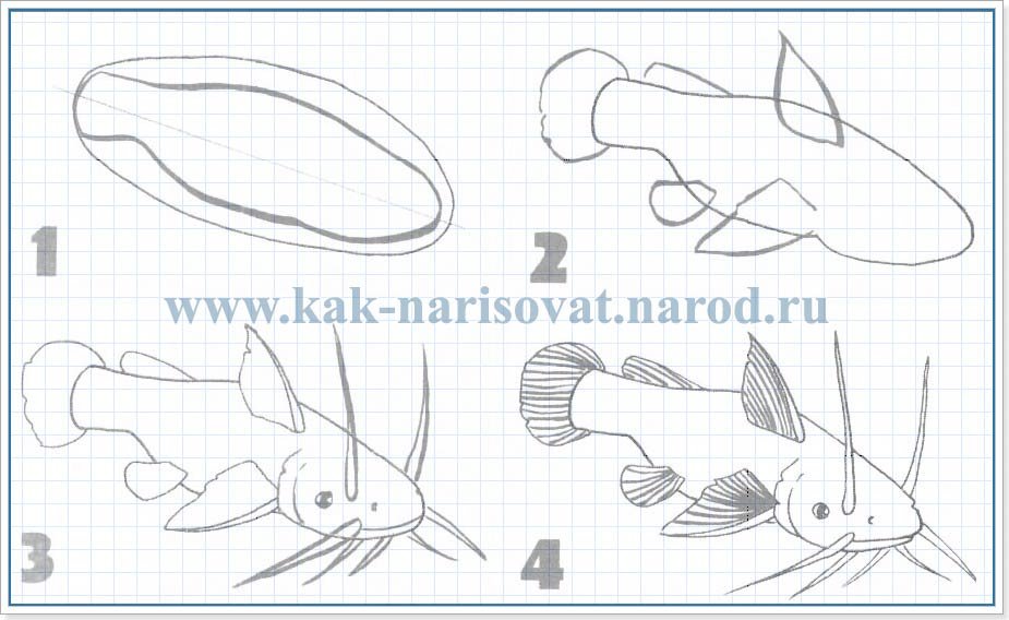 Нарисовать сома карандашом поэтапно
