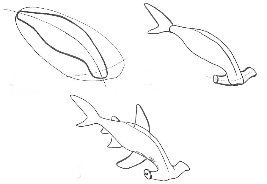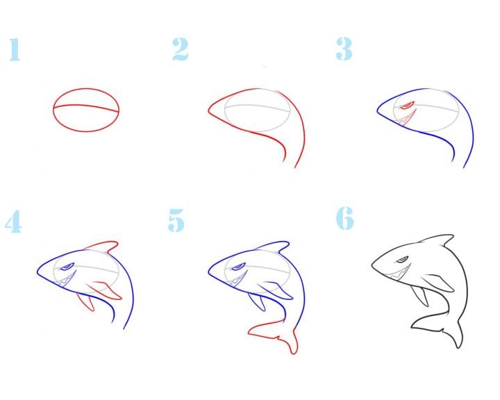 Акула пошаговое рисование