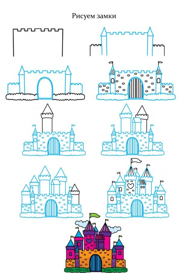 Рисование замок пошагово