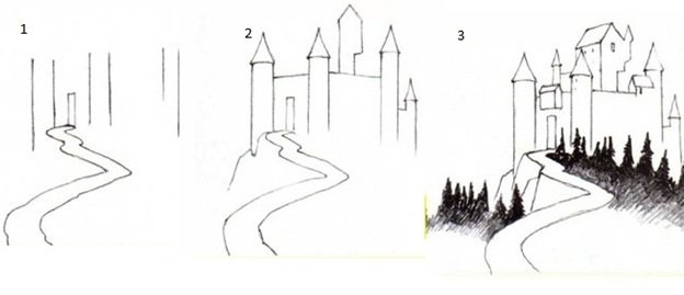 Поэтапное рисование замка