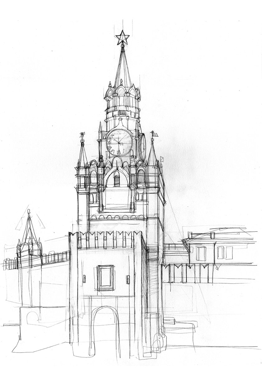 ![Кремль Московский набросок]()