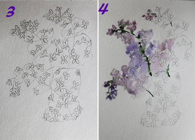 Этапы рисования сирени