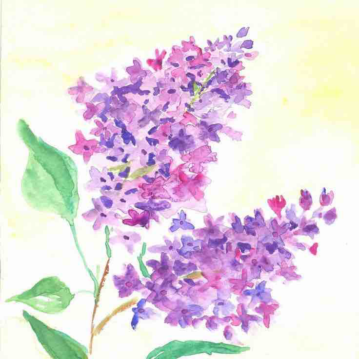 Ветка сирени акварелью