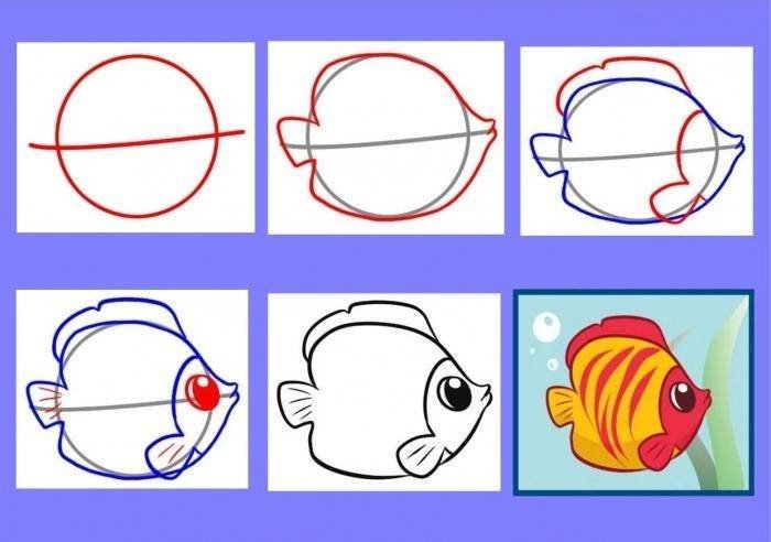 Поэтапное рисование рыбки
