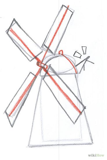 Рисовать мельницу поэтапно