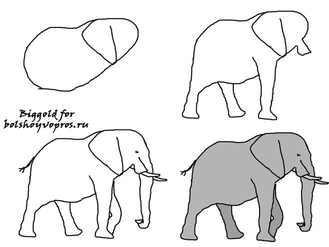 Поэтапное рисование слона