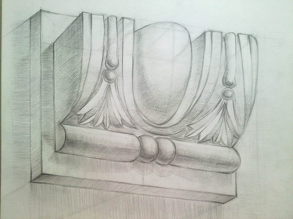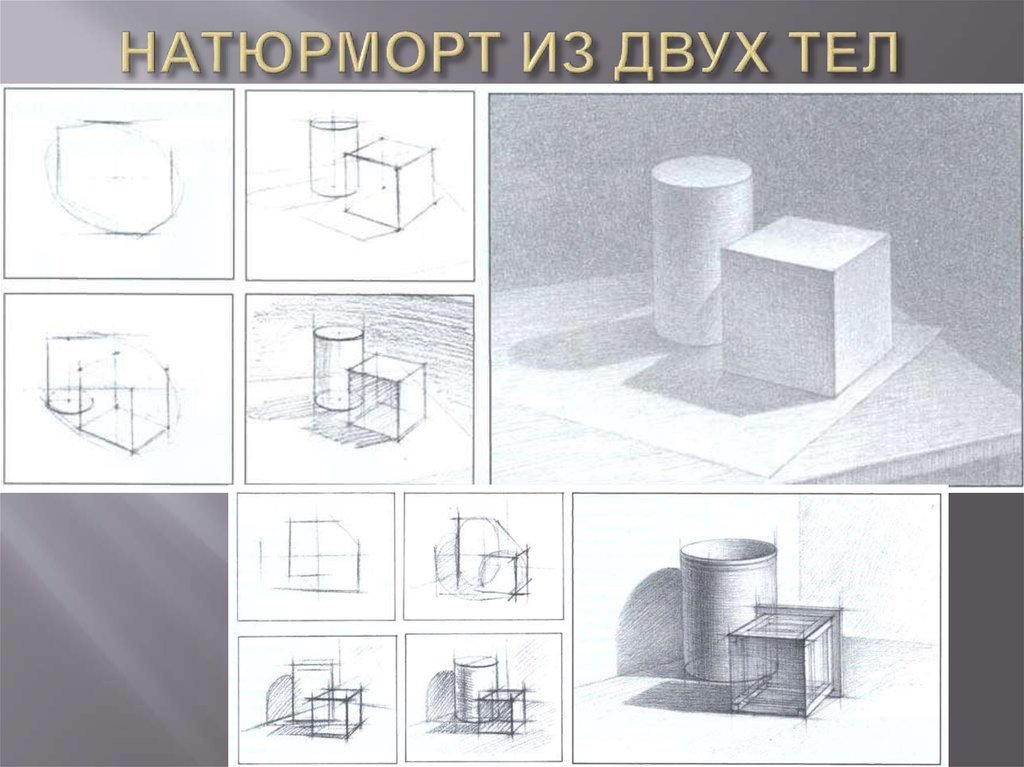 ![Светотеневой рисунок Куба и цилиндра в перспективе]()