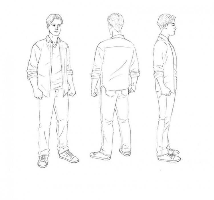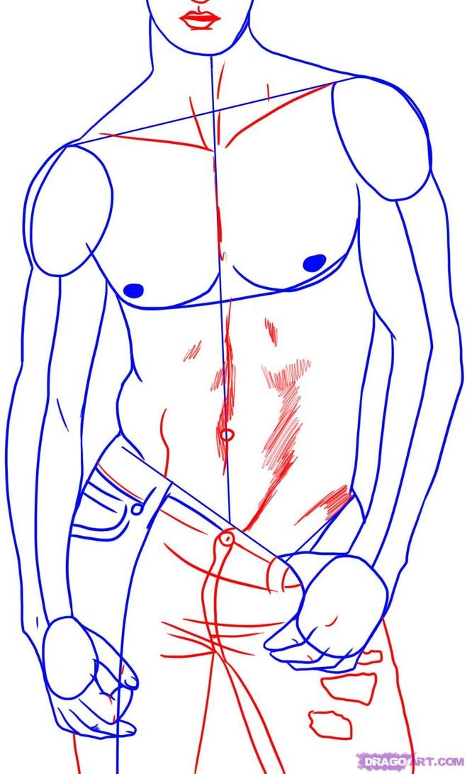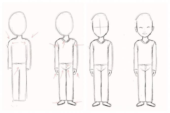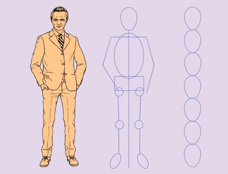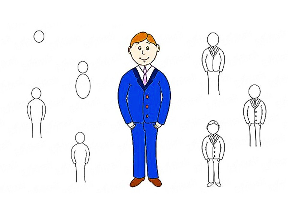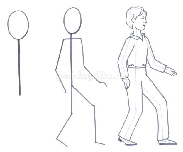![Рисунок мужчины карандашом в полный рост в одежде]()