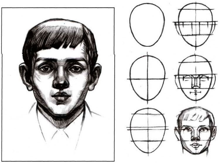 ![Портрет (конструкция головы человека. Анфас, профиль)]()
