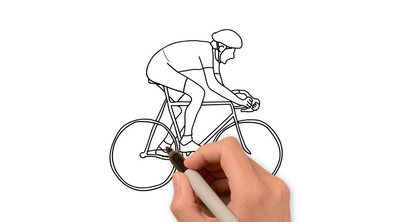 ![Велосипедист поэтапное рисование]()