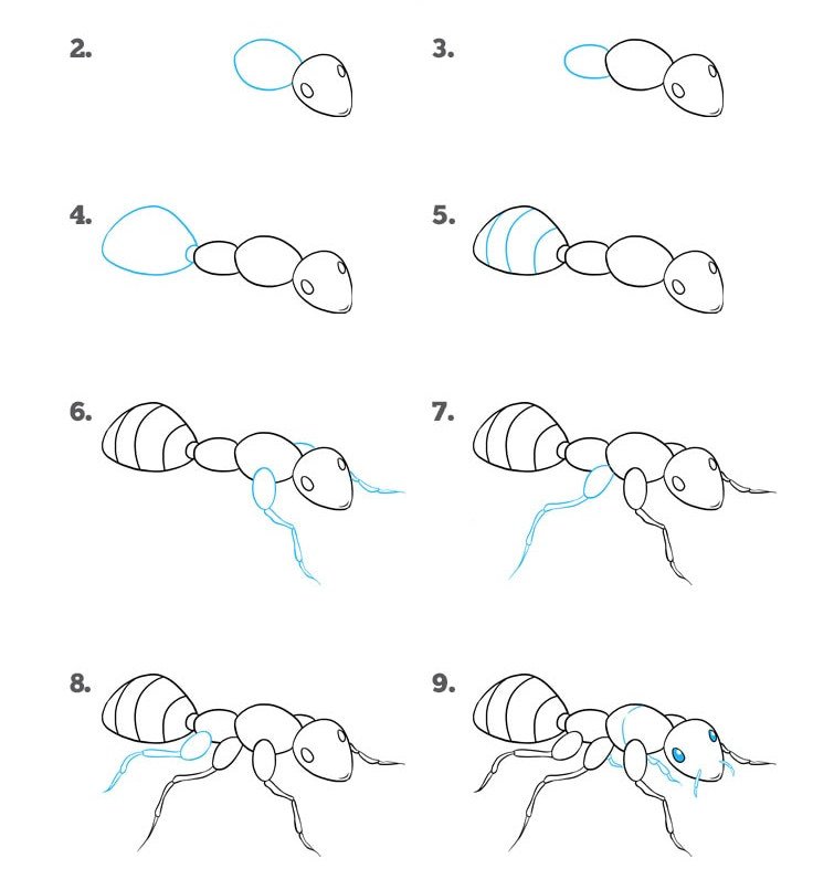 Поэтапное рисование муравья
