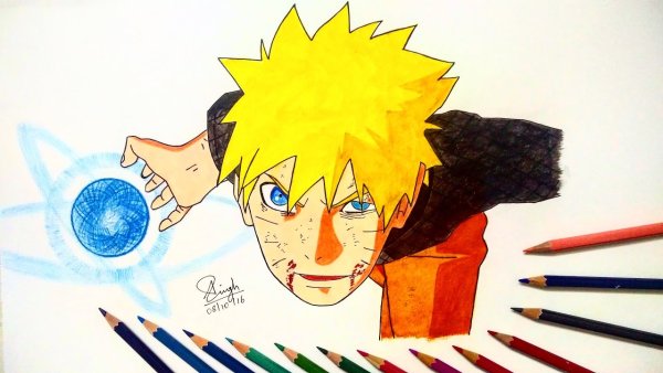 ![Наруто расенган карандашом]()