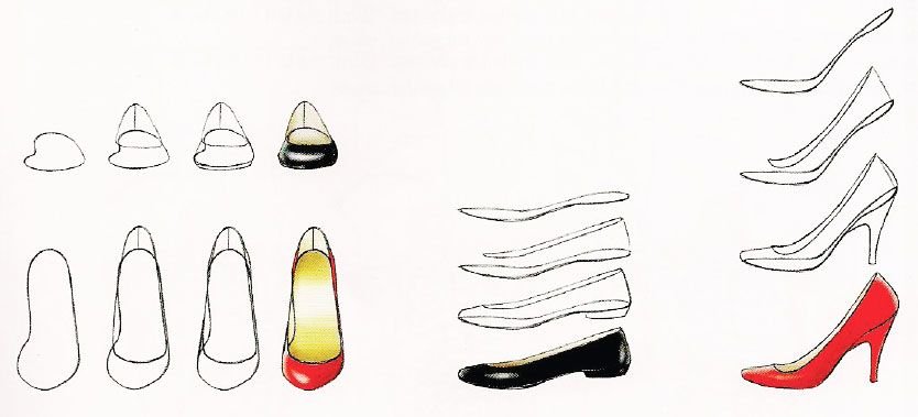 ![Туфли поэтапно карандашом]()