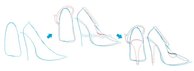 Поэтапное рисование туфлей