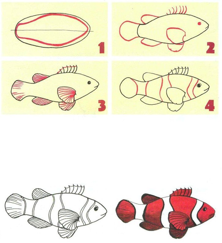 Этапы рисования рыбки