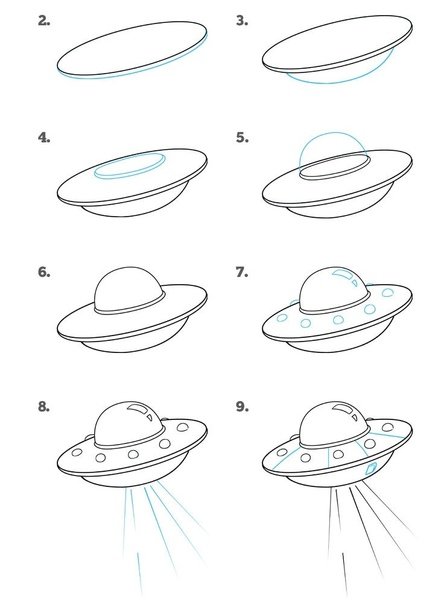 ![Пошаговое рисование космического корабля]()