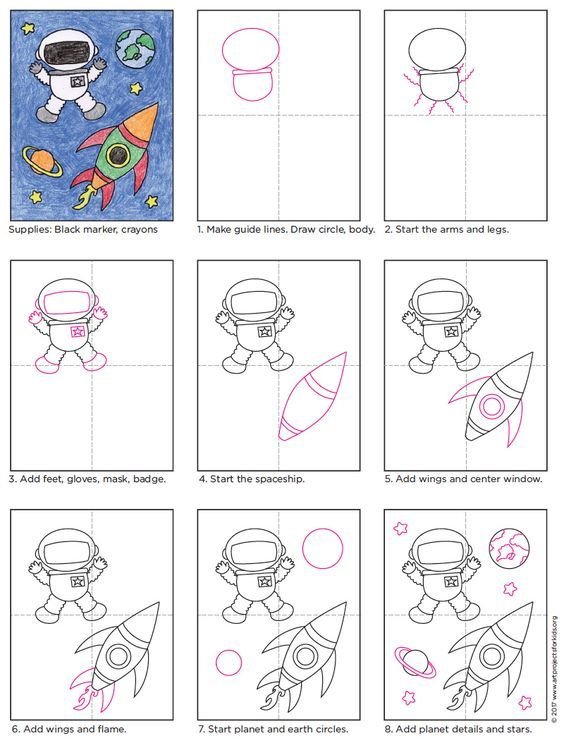 Космонавт рисунок поэтапно