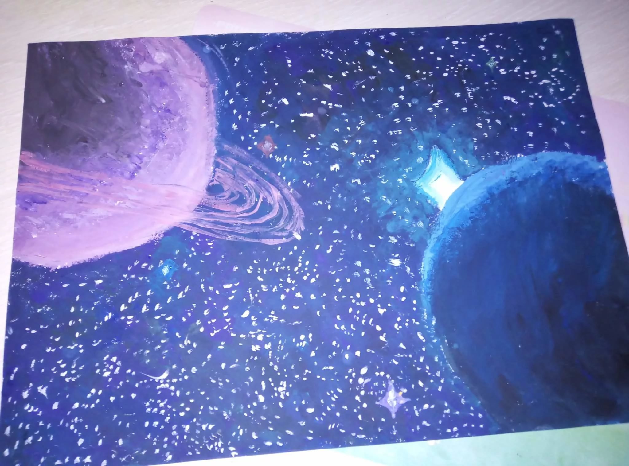 ![Космический пейзаж гуашью]()