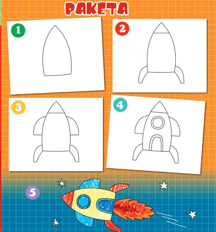 Рисование ракеты пошагово для детей