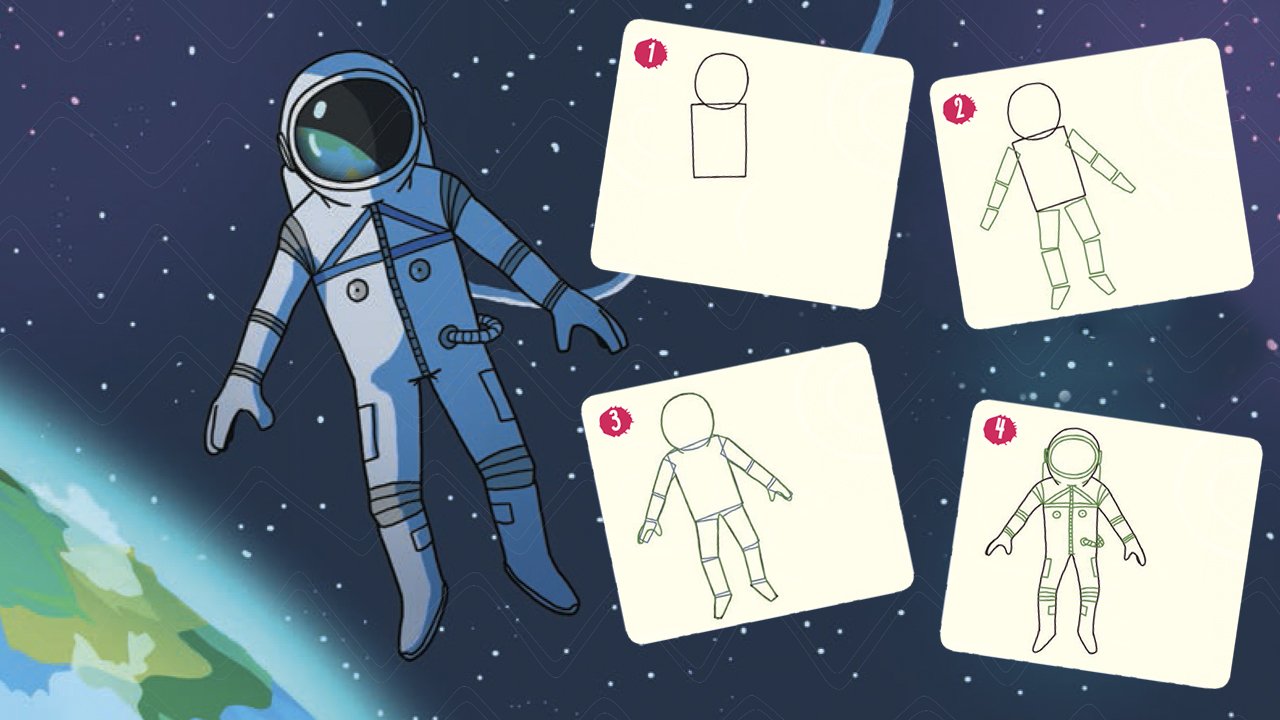 ![Поэтапный рисунок Космонавта]()