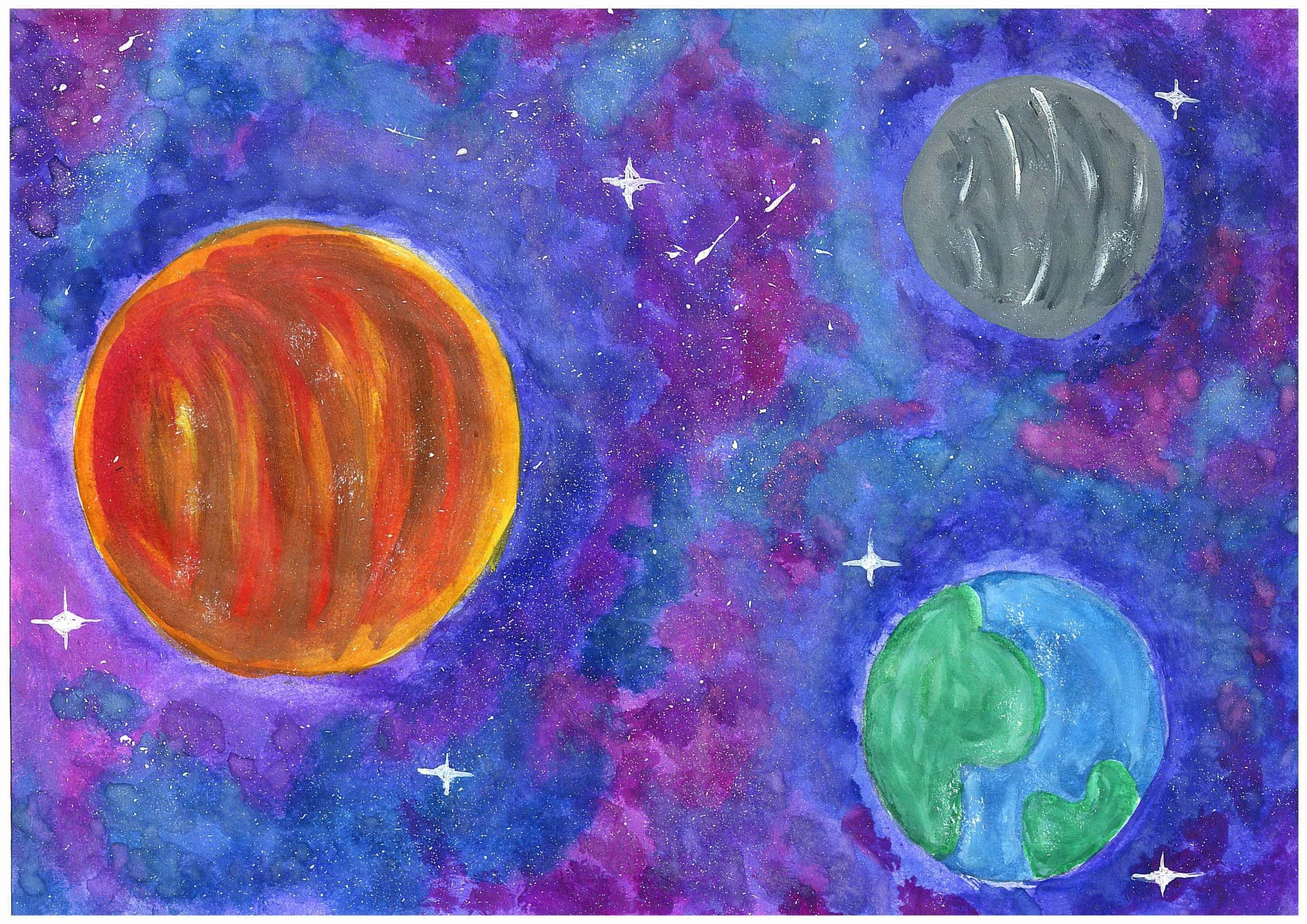 ![Космос красками для детей]()