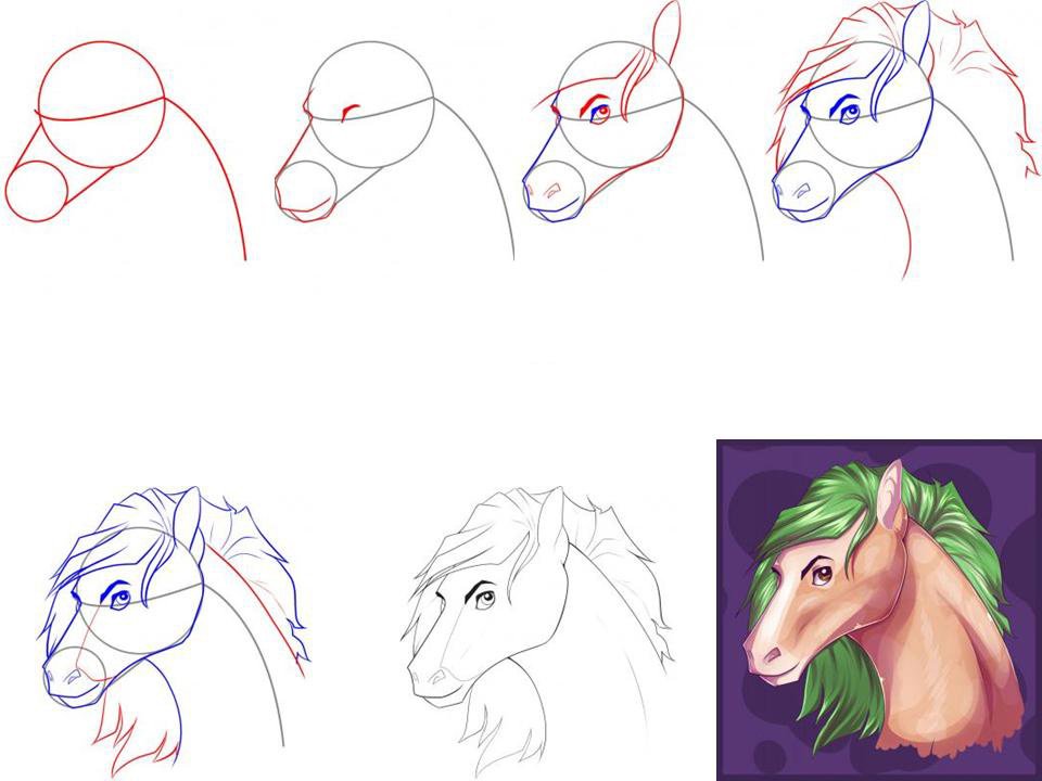 ![Конёк-горбунок рисунок карандашом поэтапно]()