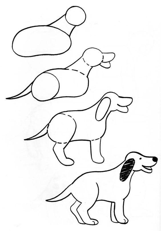 Схема рисования собаки для дошкольников