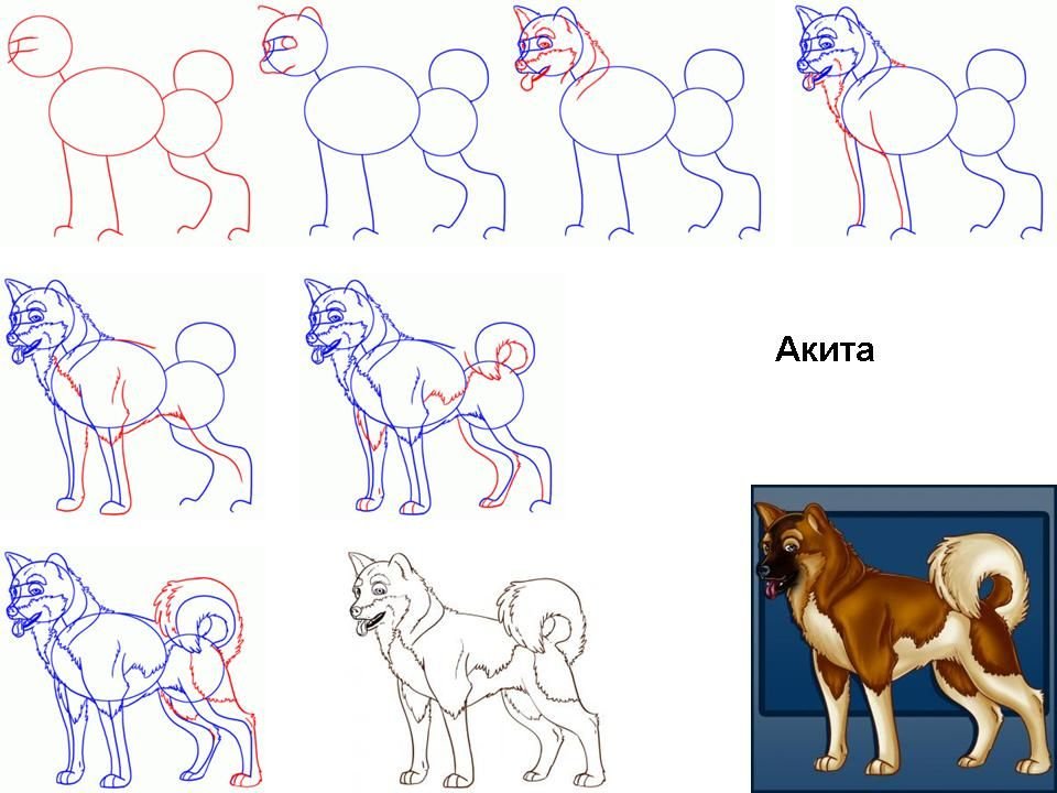 Поэтапный рисунок собаки
