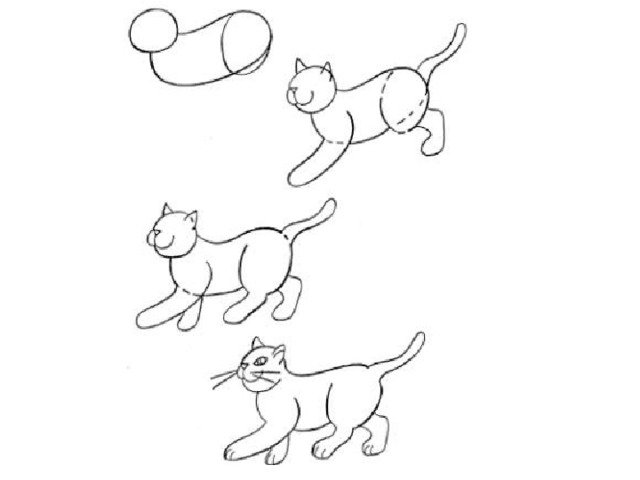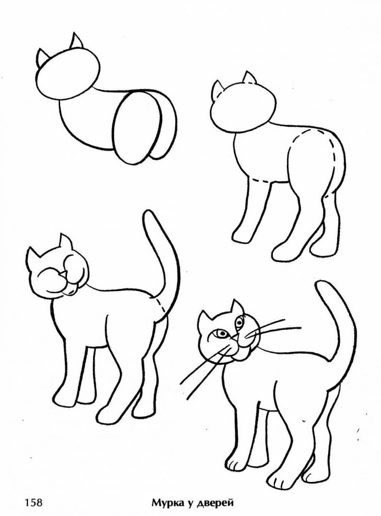 Этапы рисования кошки для дошкольников